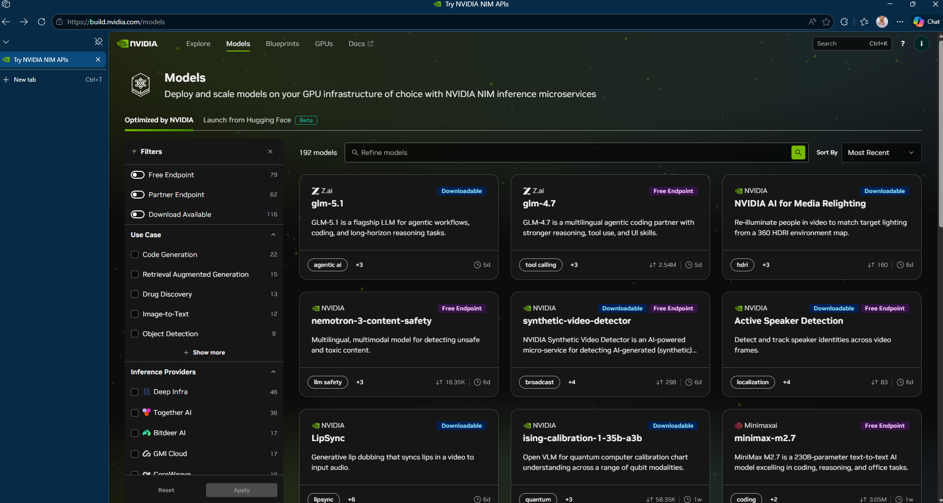 Think of build.nvidia.com/models as NVIDIA’s model playground. Under the hood, it runs on NIM—NVIDIA Inference Microservices which packages AI models as optimized, ready-to-deploy containers. You can run them on NVIDIA’s cloud for free testing, download the containers to your own hardware later or scale up through DGX Cloud when you’re ready for production .